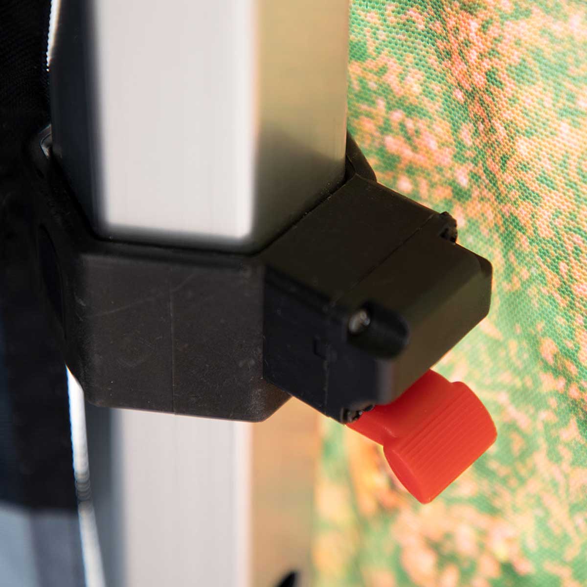 Hardware: 1.5” Professional grade, full-truss, collapsible, aluminum frame. Anodized-aluminum finish on frame. Tension crank for peak to snug sagging.