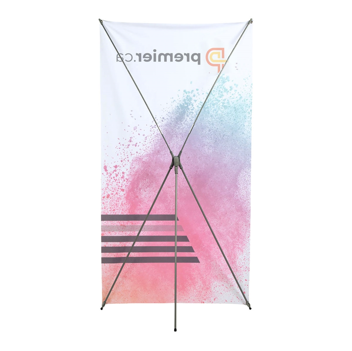 Promote your company or product with one of these convenient and eye-catching display stands: highly visible, portable and affordable! The X-Frame sets up in seconds and is ideal for retail use, at trade shows and in virtually any setting.