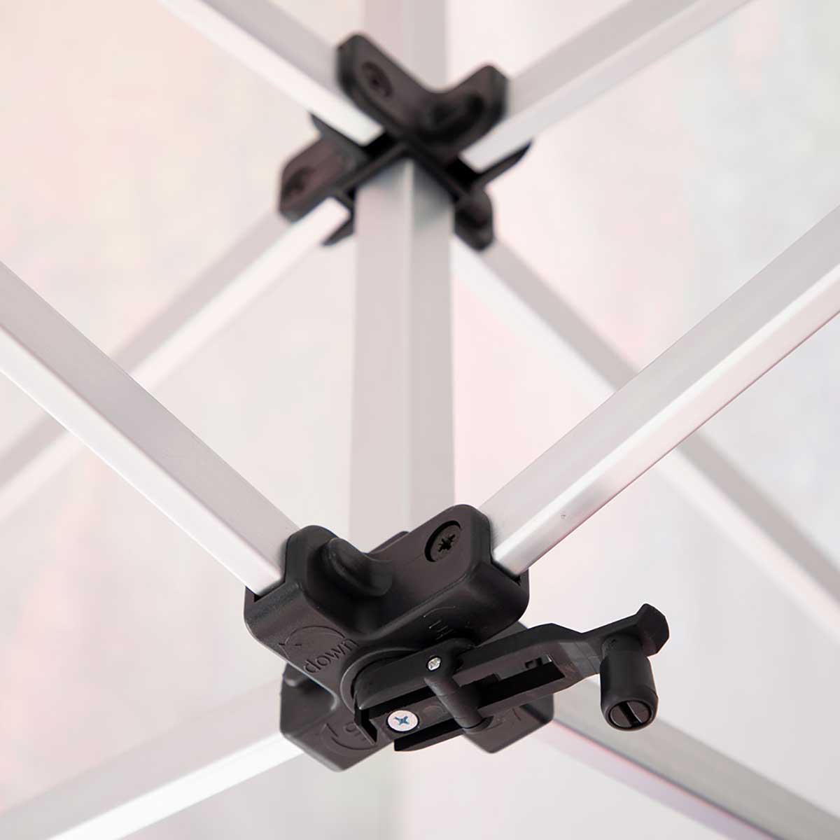 Hardware: 1.5” Professional grade, full-truss, collapsible, aluminum frame. Anodized-aluminum finish on frame. Tension crank for peak to snug sagging.
