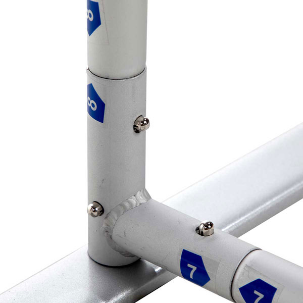 Hardware: Four click-and-snap aluminum frame sizes available with narrow base (8” deep).